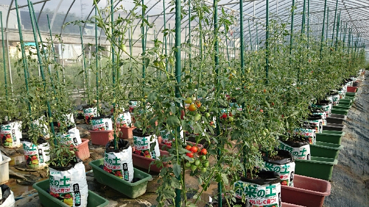 このバッグ栽培はメリットも多いのです。特に根域や水が限られることに起因して平均の糖度は8度以上と甘く、また完全無農薬を実現しています。 |