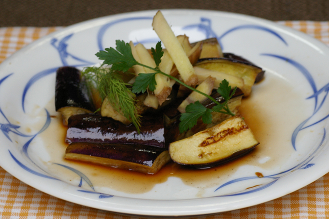 茄子は肉や油との相性が良く、この一品はその性質をシンプルに表現した料理です。